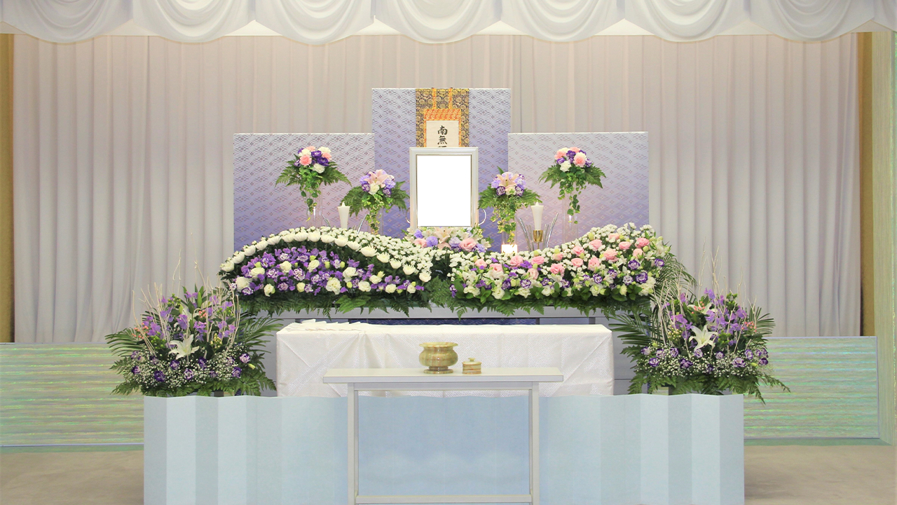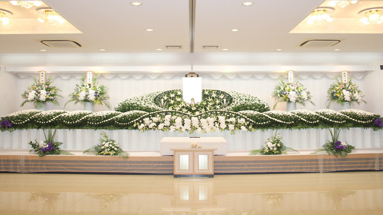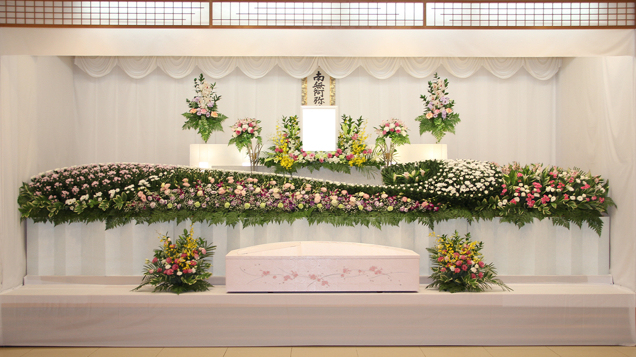 故人様の最期を彩る祭壇。美しい花々と共に見送ってさし上げたい。お客様も祭壇のお写真を撮影されることが多いですが、やはり嬉しいものです。